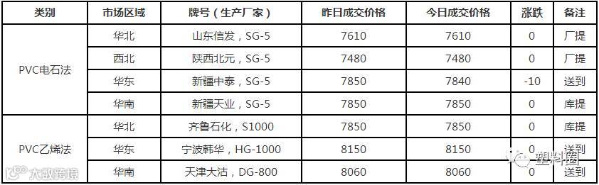国内电石法5型料主流报价在7620-7880元/吨;乙烯料主流市场价格在7800-8020元/吨,高型号价格高100-150元/吨。