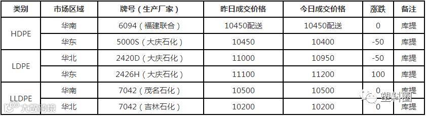 LLDPE主流市场价格在10050-10600元/吨,LDPE主流市场价格在10400-11000元/吨,HDPE膜主流市场价格在9950-10750元/吨。