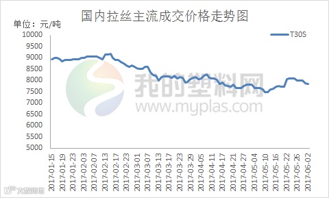 根据我的塑料网真实成交数据显示,本周国内PP市场报盘走低。截止本周五拉丝主流价格在7700-8000元/吨不等,较上周变化不大;低融共聚价格在7900-8950元/吨不等,低价货源较上周走低150元/左右。