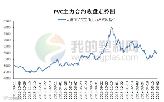 本周大商PVC主力合约1709小幅下调。具体来看,周初开盘价在5955元/吨,周五收盘5875元/吨,最高6180元/吨,最低5875元/吨,周跌80元/吨或1.34%。成交量减少至96.0万手,持仓量增加至12.1万手。