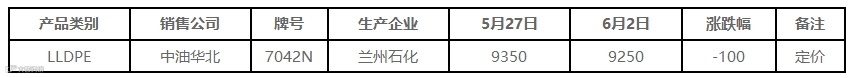 表1 本周国内PE出厂价格调整(单位:元/吨)
