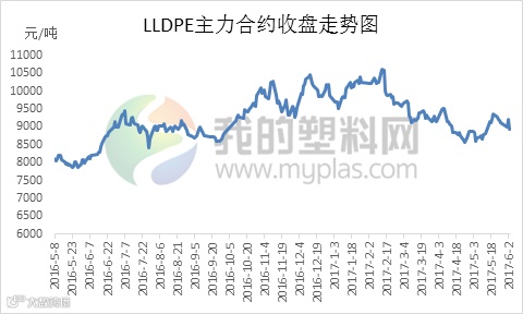 本周大商所连塑主力合L1709下滑明显,周初开盘报9235元/吨,周五收盘报8930元/吨,最高报9275元/吨,最低至8905元/吨,周跌200元/吨或2.19%。成交量增加至73.06万手,持仓增加至39.81万手。