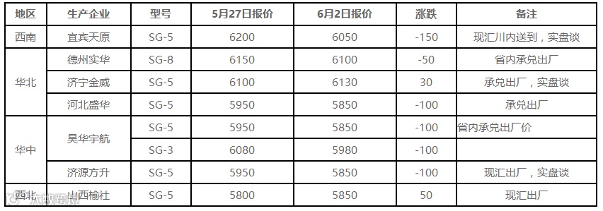 本周电石市场报价个别走低,观望氛围浓厚。电石货源到货分布依旧不均衡,华北地区PVC检修企业增加,电石需求量减少。华南地区波动不大,局面僵持。截至本周末各地电石到家价格为:华北地区接收价2580-2850元/吨;河南接收价在2730-2740元/吨;陕西当地货源送到2410-2450元/吨。