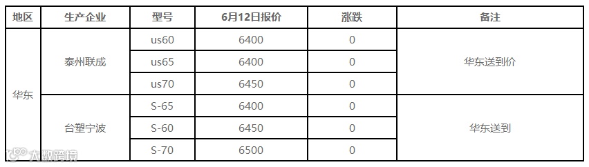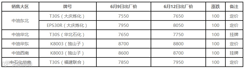 6月12日国内PE出厂价格调整(单位:元/吨)