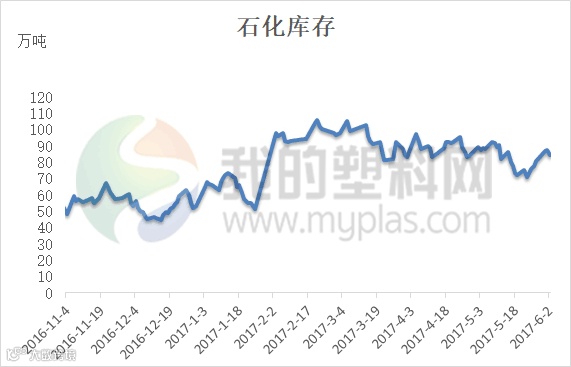 但是目前需要看到的是,在下游实际消费能力未有明显提升的背景下,上游库存整体呈现下滑趋势,截止6月初国内聚烯烃石化库存降至85万吨下方,环比上月下滑5.88%。引起上游去库存的主要原因是在上月中旬起原料价格反弹,部分套保商及中间贸易商补库锁货,产业链中游库存和隐形库存增加。在行情出现不稳的背景下,这一部分货源的涌出将加剧市场的动荡。一旦期货走低,套保商心态不稳低价出货,拖累市场下行。然而若期货盘面再度向好,这一部分资源再度锁定,对于行情不再形成利空打压。