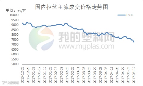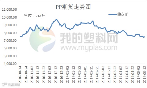 根据我的塑料网真实成交数据显示,本周国内PP市场报盘先跌后涨。截止本周五拉丝主流价格在7450-7750元/吨不等,较上周走低50-200元/吨左右;低融共聚价格在7600-8600元/吨不等,较上周走低350-400元/左右。期货及石化政策成为影响本周市场走势的关键。
