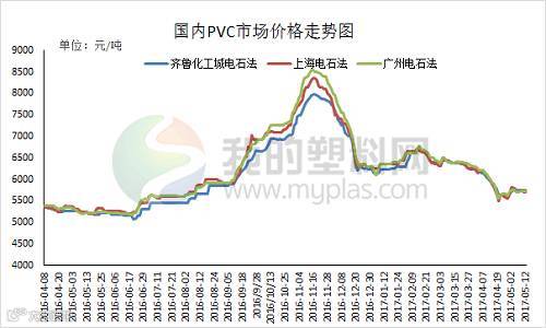 本周国内PVC市场表现一般,电石料涨幅在50-100元/吨,乙烯料价格变动不大。周内,V1709期货反弹,市场商家跟随试探高报价格,然下游需求不佳,PVC拉涨阻力较大,出货阻力凸显。本周陆续有企业开始检修或降负荷生产,加之V1709期货上演“一日游”行情,商家持观望态度,出货为主。下游接单较为谨慎,成交维持刚需。至本周末国内电石法5型料主流报价在5620-5830元/吨;乙烯料主流市场价格在6150-6450元/吨,高型号价格高150元/吨。
