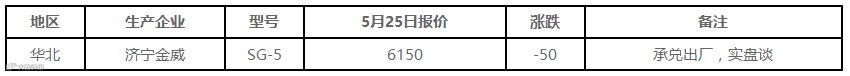 表6 5月25日国内PVC出厂价格调整(单位:元/吨)