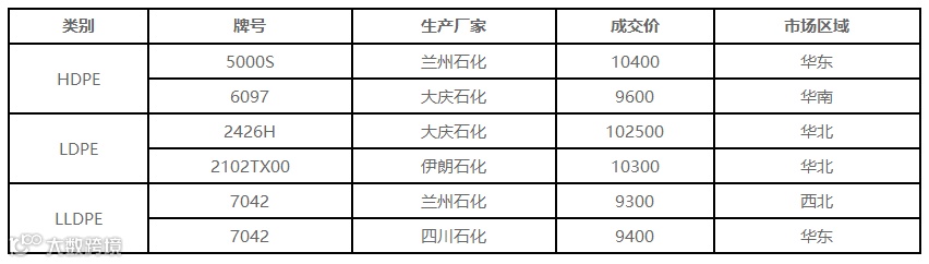 PE:我的塑料网(www.myplas.com)预计明日国内PE市场小幅整理,波动幅度在50-100元/吨。LLDPE主流市场价格在9250-9500元/吨,LDPE主流市场价格在10000-10200元/吨,HDPE膜主流市场价格在9800-9950元/吨。
