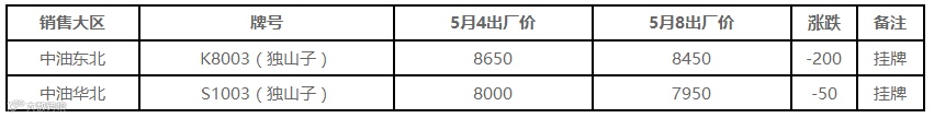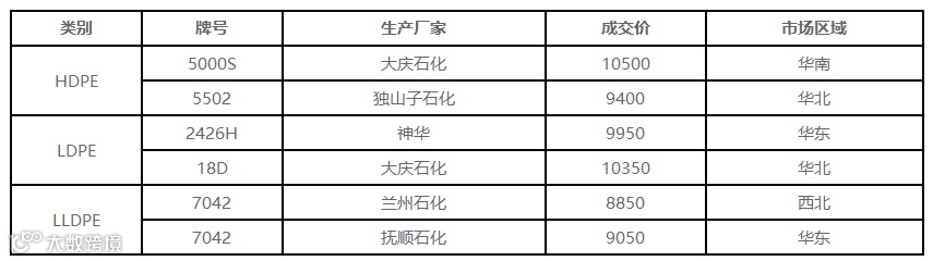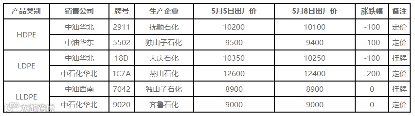 表4 5月8日国内PE出厂价格调整(单位:元/吨)
