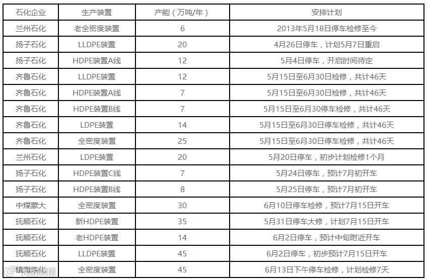 PE装置检修密集为市场带来支撑