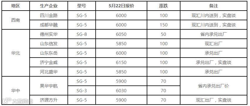 表6 5月22日国内PVC出厂价格调整(单位:元/吨)