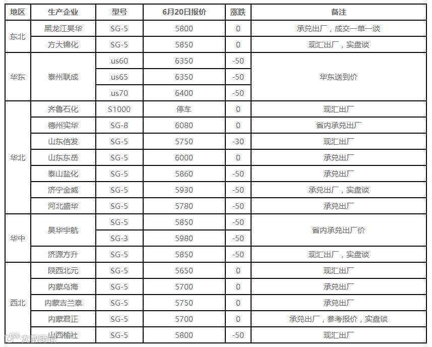 6月20日国内PVC出厂价格调整(单位:元/吨)