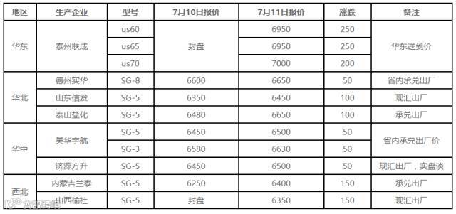7月11日国内PVC出厂价格调整(单位:元/吨)