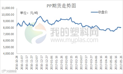 本周国内PP期货主力1709合约围绕60日均线持续调整。具体来看,周初开盘价在8138元/吨,周五收盘8026元/吨,最高8198元/吨,最低7901元/吨,周跌69元/吨或0.85%。成交量减少至45.02万手,持仓量增加至67.57万手。