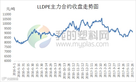 本周大商所连塑主力合L1709下滑明显,周初开盘报9390元/吨,周五收盘报9130元/吨,最高报9420元/吨,最低至9045元/吨,周跌220元/吨或2.14%。成交量减少至43.09万手,持仓减少至38.75万手。