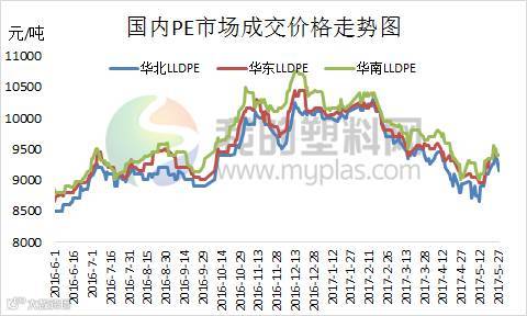 本周聚乙烯市场价格周初小幅上涨,周中涨跌互现,至周末小幅下跌。周初石化频繁上调出厂价格,加之线性期货高开震荡,贸易商随行跟涨报盘。周中石化出厂价格高位,然线性期货走软,终端抵触高价,各大市场涨跌不一。周末临近端午小假期,终端需求不高,市场交投清淡,贸易商多让利出货为主。