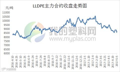 本周大商所连塑主力合L1709震荡下行,周初开盘报8865元/吨,周五收盘报8705元/吨,最高报8930元/吨,最低至8605元/吨,周跌175元/吨或1.97%。成交量减少至45万手,持仓减仓至38.9万手。