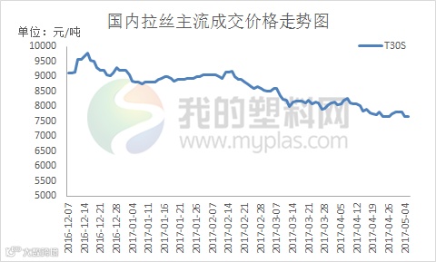 根据我的塑料网真实成交数据显示,本周国内PP市场报盘先涨后跌。截止本周五拉丝主流价格在7500-7950元/吨不等,较上周走低150-200元/吨左右;低融共聚价格在8000-8950元/吨不等,较上周走低50-150元/左右。期货及石化政策成为影响本周市场走势的关键。