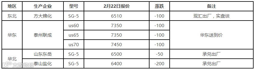 表6 2月22日国内PVC出厂价格调整(单位:元/吨)