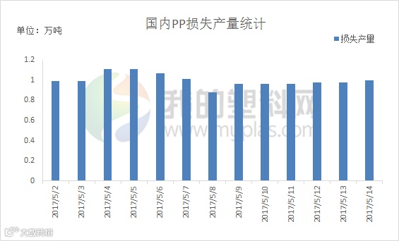上周国内PP石化企业检修装置逐渐增加。周初四川石化(45万吨/年)恢复开车,周中起,延长中煤榆林一线(30万吨/年)、扬子石化A/B线(14万吨/年)停车检修,市场整体货源供应量略有减少。据我的塑料网统计,上周国内PP市场损失产量约在6.72万吨,较前一周7.27万吨减少0.55万吨。下周茂名石化三线装置(20万吨/年)近期开车,国内PP石化企业齐鲁石化(7万吨/年)、徐州海天石化(20万吨/年)、扬子石化2PP(20万吨/年)、神华宁煤(50万吨/年)、中煤蒙大(30万吨/年)停车检修,我的塑料网预计本周国内PP市场货源供应量逐渐减少。