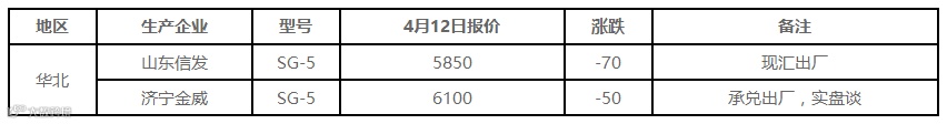 表6 4月12日国内PVC出厂价格调整(单位:元/吨)