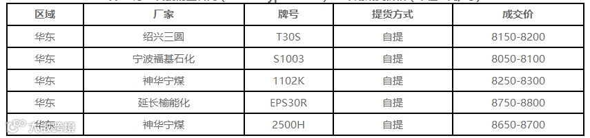 表5 4月12日国内PP出厂价格调整(单位:元/吨)