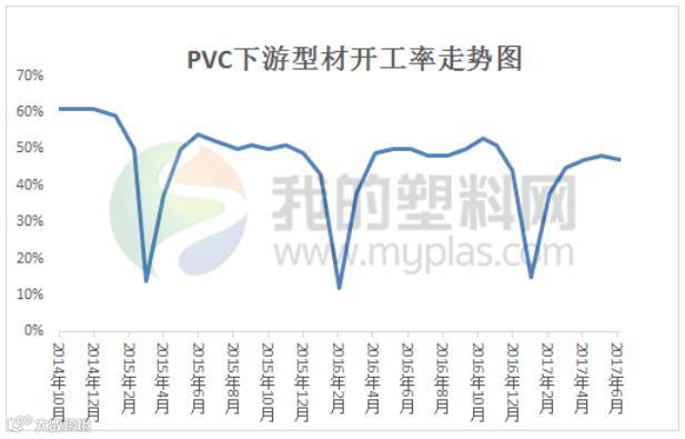 本周国内PVC下游制品开工在48.5%上下。华北地区延续环保、消防、安全三合一巡查,塑料行业整体开工有限,加之PVC原料较高,企业开工一般;华东地区仍处于雨季,开工情况变化不大。