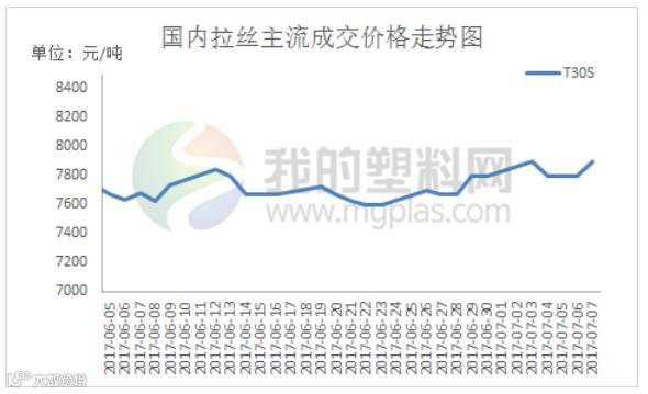 根据我的塑料网真实成交数据显示,本周国内PP市场报盘震荡上行。截止本周五拉丝主流价格在7700-8150元/吨不等,较上周走高300-350元/吨左右;低融共聚价格在8150-8800元/吨不等,较上周走高100-200元/吨不等。