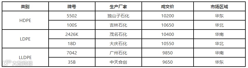 PE:我的塑料网(www.myplas.com)预计明日国内PE市场弱势整理。LLDPE主流市场价格在9500-9900元/吨,LDPE主流市场价格在10300-10700元/吨,HDPE膜主流市场价格在10000-10450元/吨。