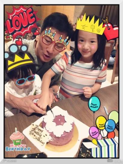 ↑↑奏四介个,他爸爸和孙子孙女一起切蛋糕的照片