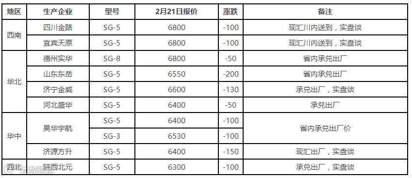 表6 2月21日国内PVC出厂价格调整(单位:元/吨)