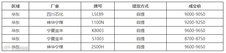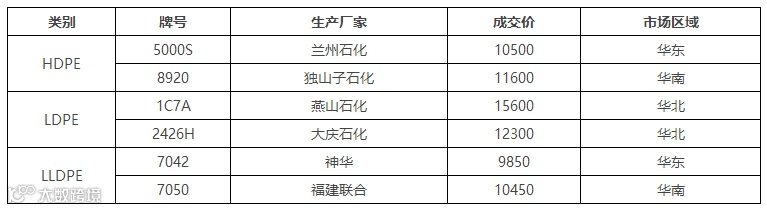 表1 1月4日我的塑料网PE市场成交价格(单位:元/吨)