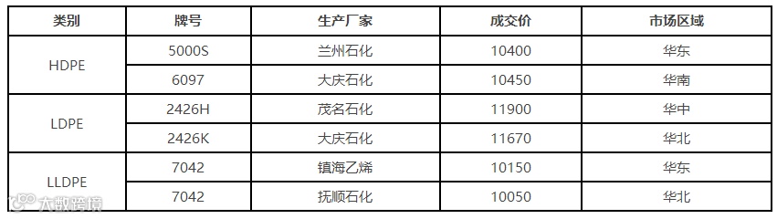 表1 1月18日我的塑料网PE市场成交价格(单位:元/吨)