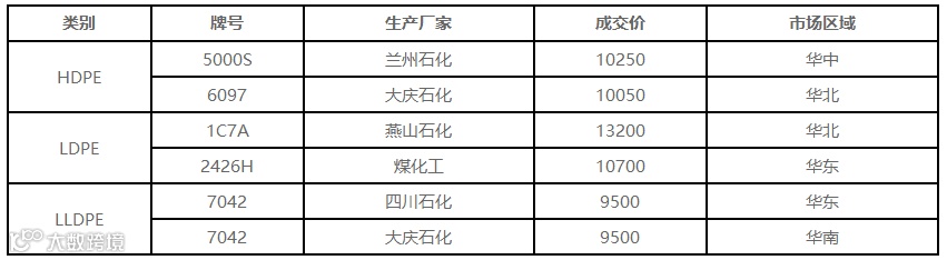 PE: 我的塑料网(www.myplas.com)预计明日国内PE市场弱势整理。LLDPE主流市场价格在9200-9700元/吨,LDPE主流市场价格在10500-11000元/吨,HDPE膜主流市场价格在9800-10100元/吨。