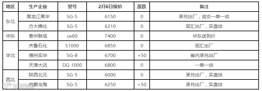 表6 2月6日国内PVC出厂价格调整(单位:元/吨)