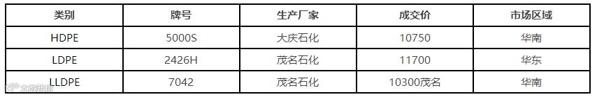 表1 2月6日我的塑料网PE市场成交价格(单位:元/吨)