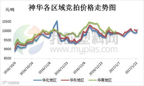 1月16日-1月22日,PE市场价格震荡上行。以华北地区竞拍为例,1月16日-1月22日竞拍成交价格在9900-10060元/吨,最高10060元/吨,最低价位在9900元/吨,1月22日竞拍成交价在9910元/吨。