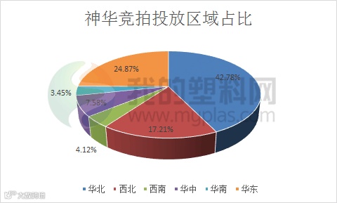 就投放区域来看,华北地区成为神华投放的重点区域,本周投放量在11010吨,占比42.78%;华东地区投放数量在6400吨,占比24.87%;西北地区投放量在4430吨,占比17.21%。