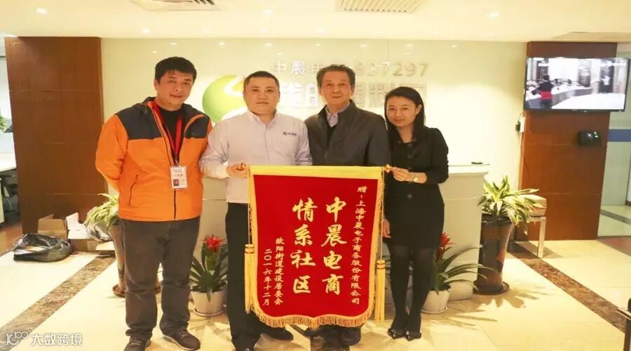 12月13日下午,上海市虹口区欧阳街道负责人一行两人,带着一面写有“中晨电商,情系社区”的锦旗来到上海中晨电子商务股份有限公司,衷心感谢公司在社区建设中对社区发展作出的大力支持。