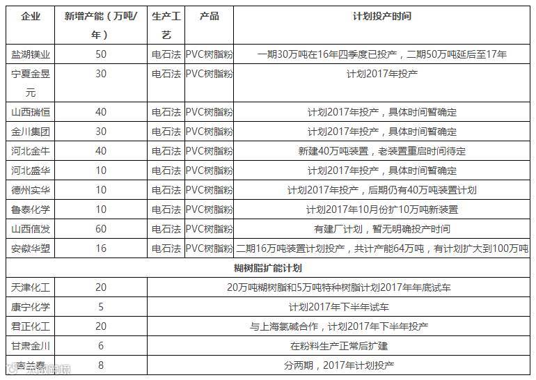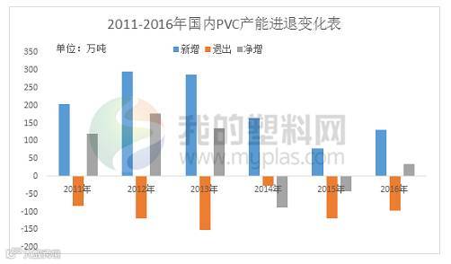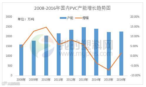 2016年,国内PVC产能小幅增长,PVC行业在今年价格创6年新高的大背景下,面对高利润的诱惑,部分前期停车装置复工,新增产能增幅高于落后淘汰产能。