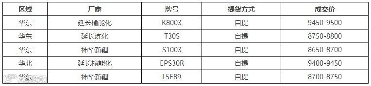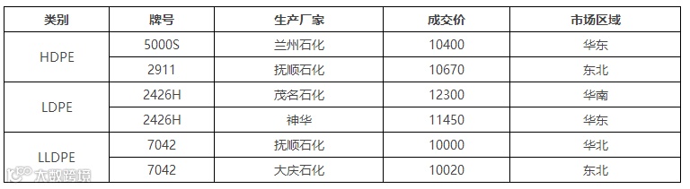 表1 1月11日我的塑料网PE市场成交价格(单位:元/吨)