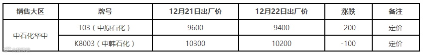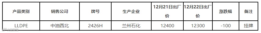 表4 12月22日国内PE出厂价格调整(单位:元/吨)