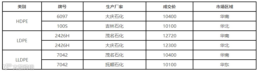 表1 12月22日我的塑料网PE市场成交价格(单位:元/吨)
