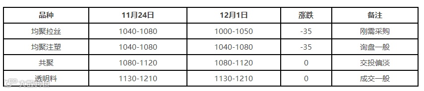 表4 美金PP市场价格对比表