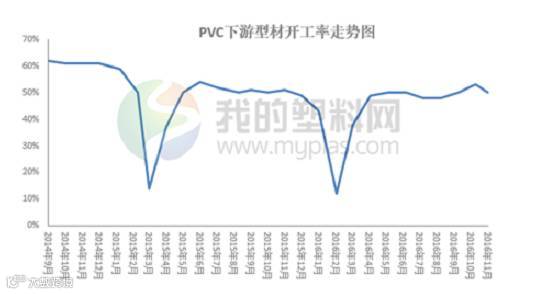 本周国内PVC下游制品开工有所降低,维持在48.57%左右。