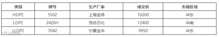 表1 12月29日我的塑料网PE市场成交价格(单位:元/吨)