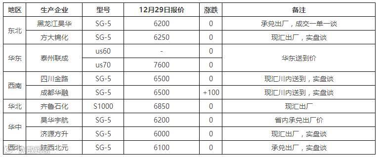 表6 12月29日国内PVC出厂价格调整(单位:元/吨)