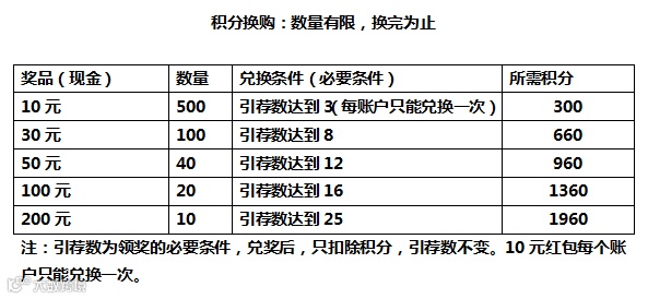 在本次活动中,引荐数是兑换现金的基础,积分是兑换现金的硬通货。所以,本次活动就是从积分和引荐这两个方面入手: