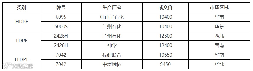 表1 12月12日我的塑料网PE市场成交价格(单位:元/吨)